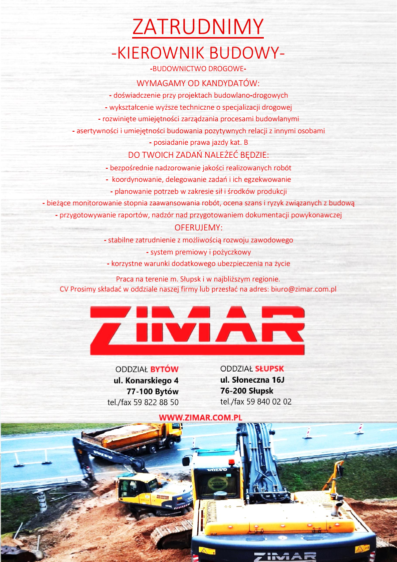 | Sposób aplikowania: | Aplikację prosimy składać mailowo na adres biuro@zimar.com.pl lub osobiście w siedzibie firmy. |